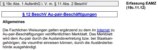 Quelle: Fachliche Weisung Bundesagentur für Arbeit §12 BeschV